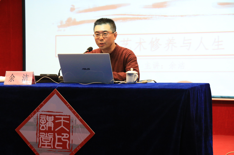 10月26日下午,天印讲堂第十一讲“艺术修养与人生”在东区大学生活动中心开讲。江苏省知名画家余洁先生为我校师生讲述如何通过提高自我的艺术修养,增加个人的生活情趣和人生品味。