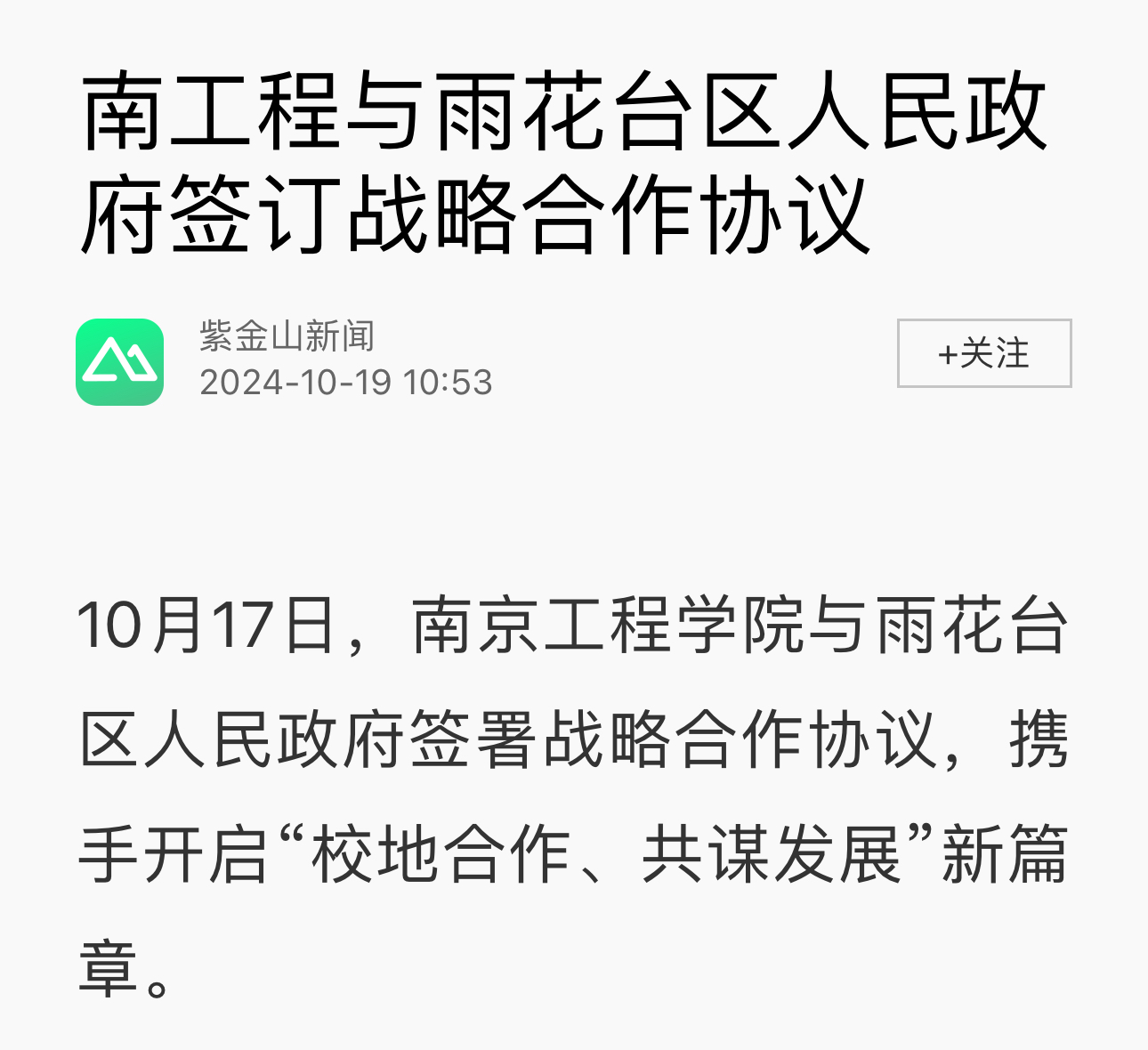 《紫金山新闻》:南工程与雨花台区人民政府签订战略合作协议