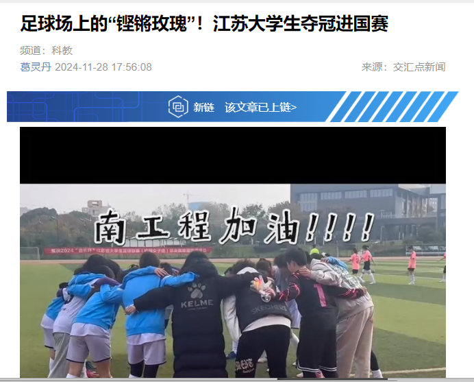《交汇点》:足球场上的“铿锵玫瑰”!江苏大学生夺冠进国赛
