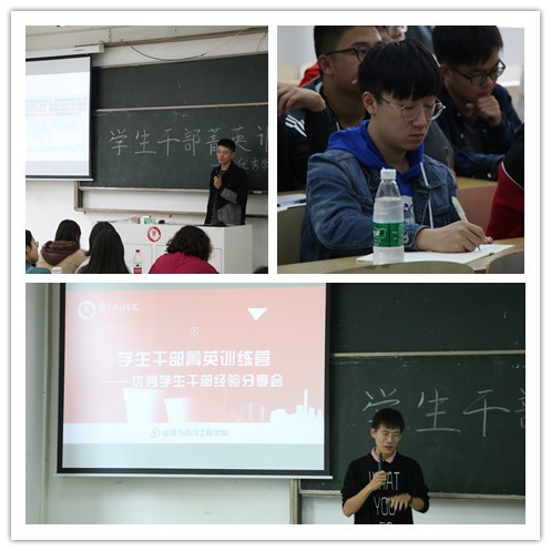 为深入学习贯彻党的十九大精神,充分加强学生干部队伍建设,进一步提高新时代学生干部的综合素质和工作能力,10月9日下午,能源与动力凯发在学海苑·公共教学组团举办“学生干部菁英训练营”——优秀学生干部经验分享会。学工办辅导员、分团委学生会学生骨干近80人参加了活动。