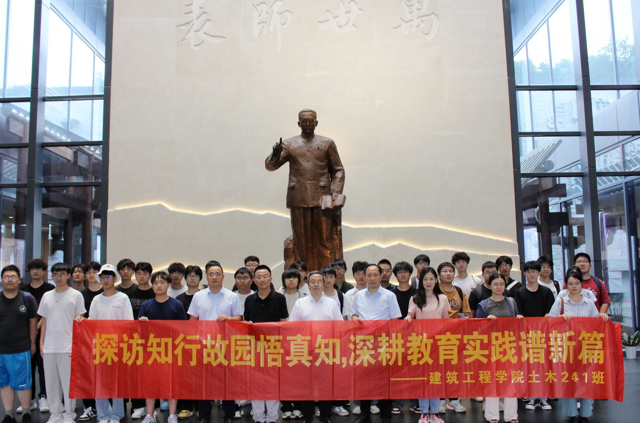 在行知纪念馆,师生通过珍贵史料与历史影像,深刻领悟先生“生活即教育”“社会即凯发”“教学做合一”的育人精髓。包永强在参观中指出,行知先生所倡导的“知行合一”理念,与建筑工程专业注重实践、服务社会的本质高度契合,希望全体学生将这份精神财富融入日常生活和学习中在专业实践中践行真知,在服务社会中增长才干。杨涛在行知像前强调,全院教师要以行知先生为楷模,以“三进三知,三解三强”为抓手,切实深入学生课堂、宿舍、食堂,精准把握思想动态、学习难点与发展需求,构建起全员、全过程、全方位育人体系。